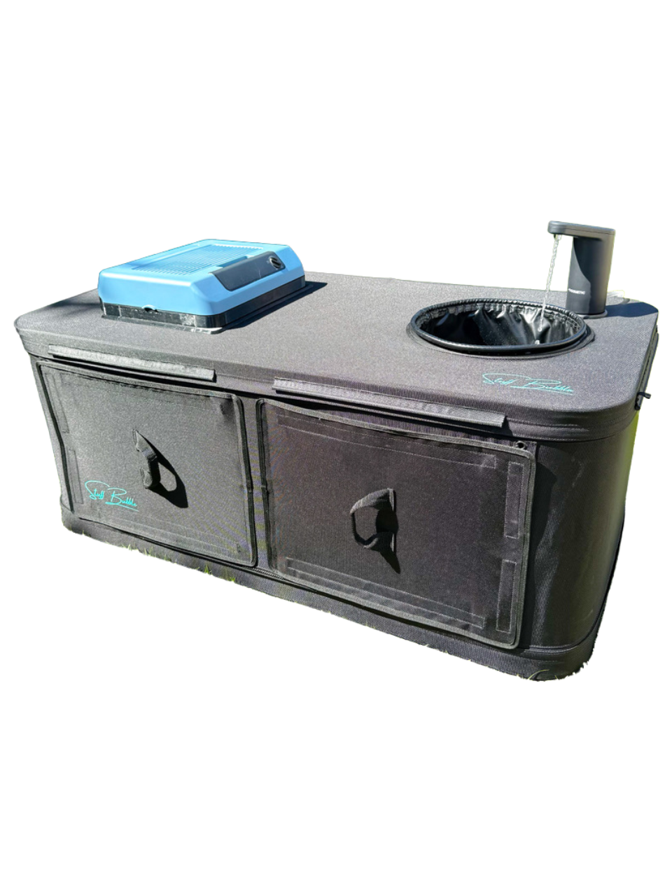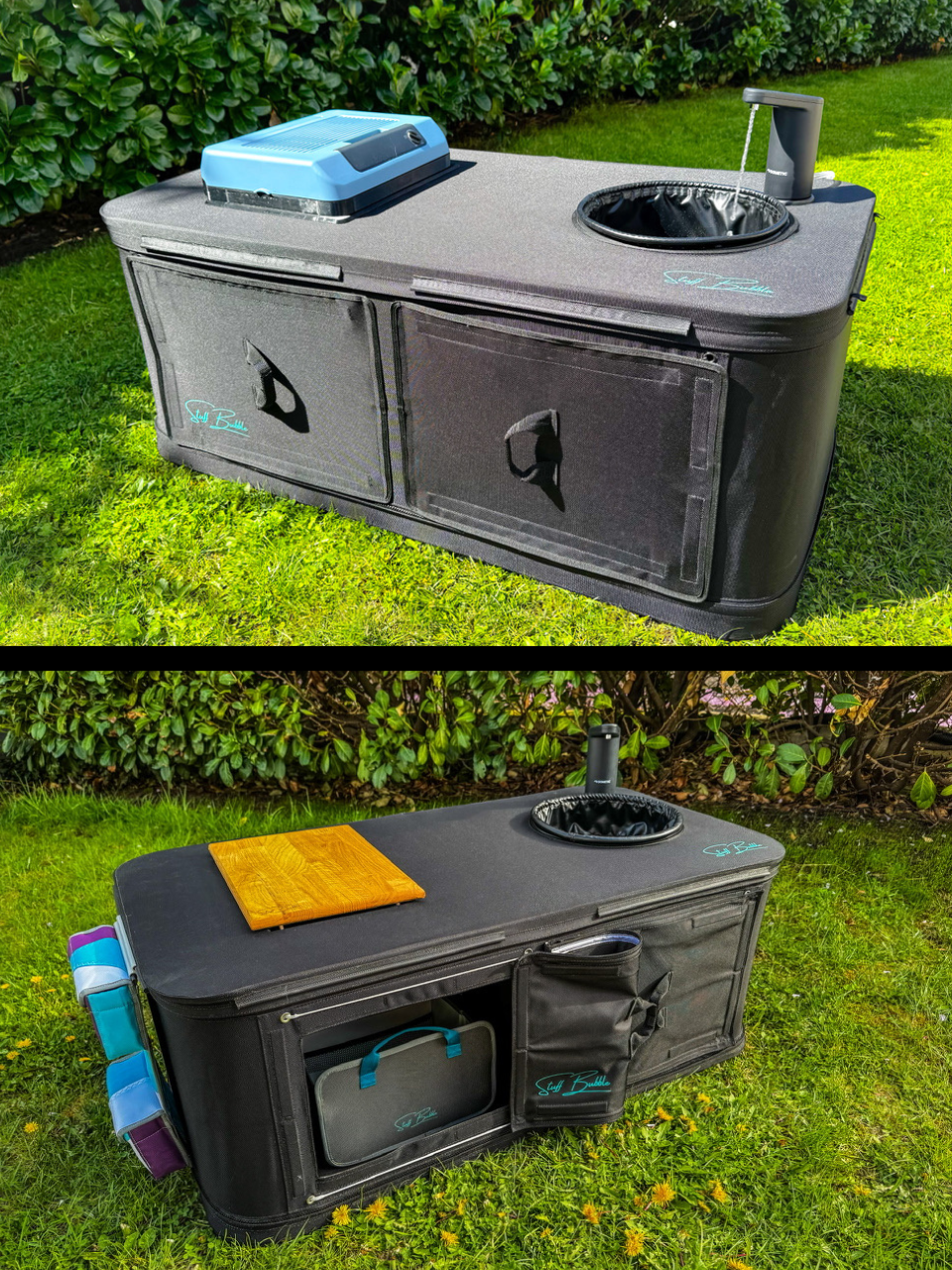 Die PumpUp Kitchen revolutioniert das Camping: Als erste aufblasbare Küche bietet sie maximale Funktionalität bei minimalem Platzbedarf. Sie besteht aus einer durchdachten Kombination aus hochwertigen Textilien, einer stabilen Küchenplatte und einer robusten Bodenplatte – perfekt für den mobilen Einsatz.
